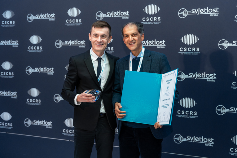 Profesor Ratimir Lazić svom kolegi i prijatelju prof. dr. sc. Lyndonu da Cruzu uručio je nagradu za vizionarstvo u oftalmološkom istraživanju, obrazovanju i njezi pacijenata, dok je dr. Sherazu Dayu nagradu za vodstvo u oftalmologiji osobno uručio prof. dr. sc. Nikica Gabrić.