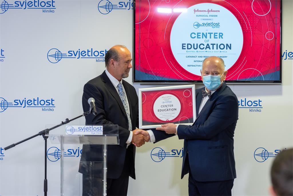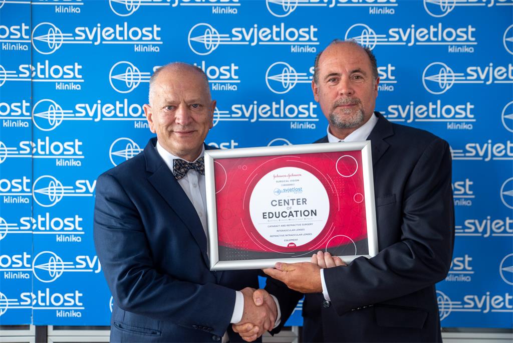 Svjetski lider u farmaceutskoj industriji, vodeća svjetska kompanija u području oftalmologije Johnson & Johnson Vision, dodijelila je Klinici Svjetlost prestižni status – Center of Education (Centar za Edukaciju) u području oftalmologije s posebnim naglaskom na refraktivnu kirurgiju, premium intraokularne leće i najsuvremenije uređaje u svjetskoj oftalmologiji.Ispred Johnson&Johnson Vision-a gospodin Thomas Müllner, regionalni manager, uručio je prestižan status koji je potvrdio položaj Klinike Svjetlost u vrhu svjetske medicine.